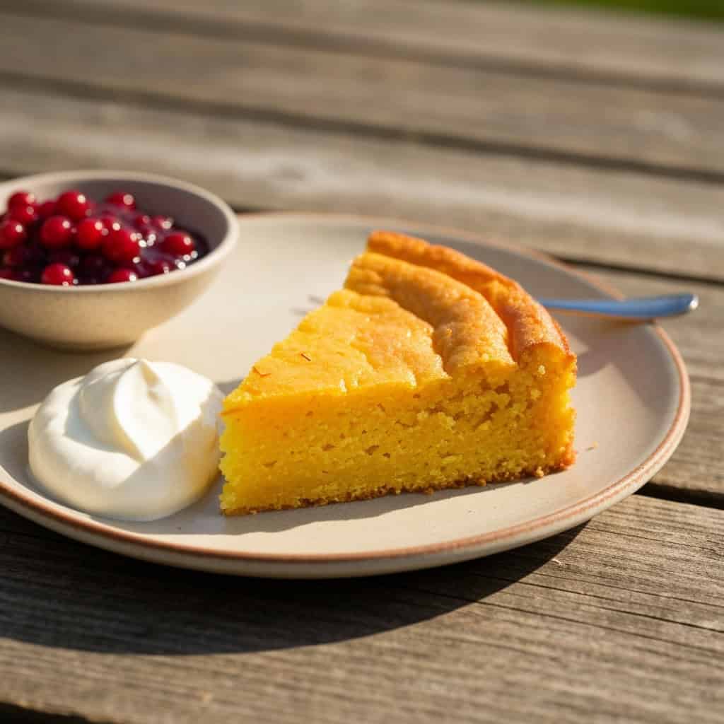 Saffranskladdkaka is traditionally served chilled or at room temperature. It pairs wonderfully with a dollop of lightly sweetened whipped cream, vanilla ice cream, or a fresh berry compote. Its richness is often balanced by tart accompaniments.